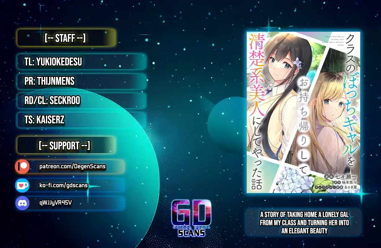 Read the latest manga A Story Of Taking Home A Lonely Gal From My Class And Turning Her Into An Elegant Beauty Chapter 22 at manganoads.com . Manga A Story Of Taking Home A Lonely Gal From My Class And Turning Her Into An Elegant Beauty is always updated at manganoads.com . Dont forget to read the other manga updates. A list of manga collections manganoads.com is in the Manga List menu.