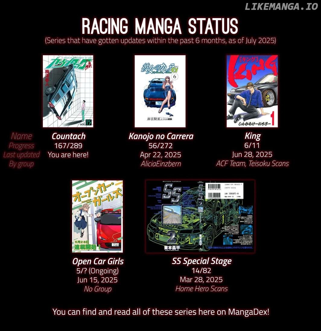 Read the latest manga Countach Chapter 167 at manganoads.com . Manga Countach is always updated at manganoads.com . Dont forget to read the other manga updates. A list of manga collections manganoads.com is in the Manga List menu.