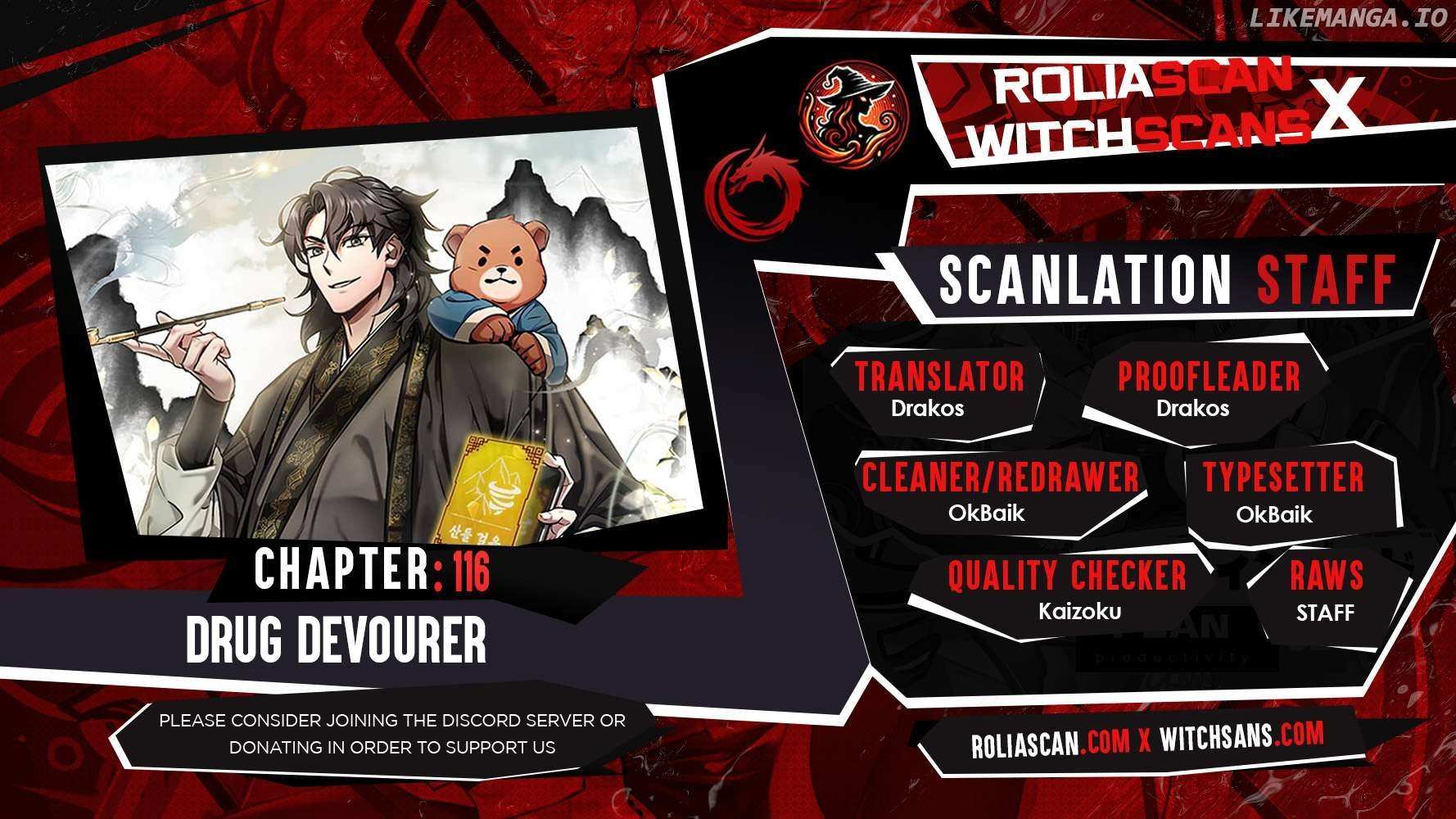 Read the latest manga Drug Devourer Chapter 116 at manganoads.com . Manga Drug Devourer is always updated at manganoads.com . Dont forget to read the other manga updates. A list of manga collections manganoads.com is in the Manga List menu.