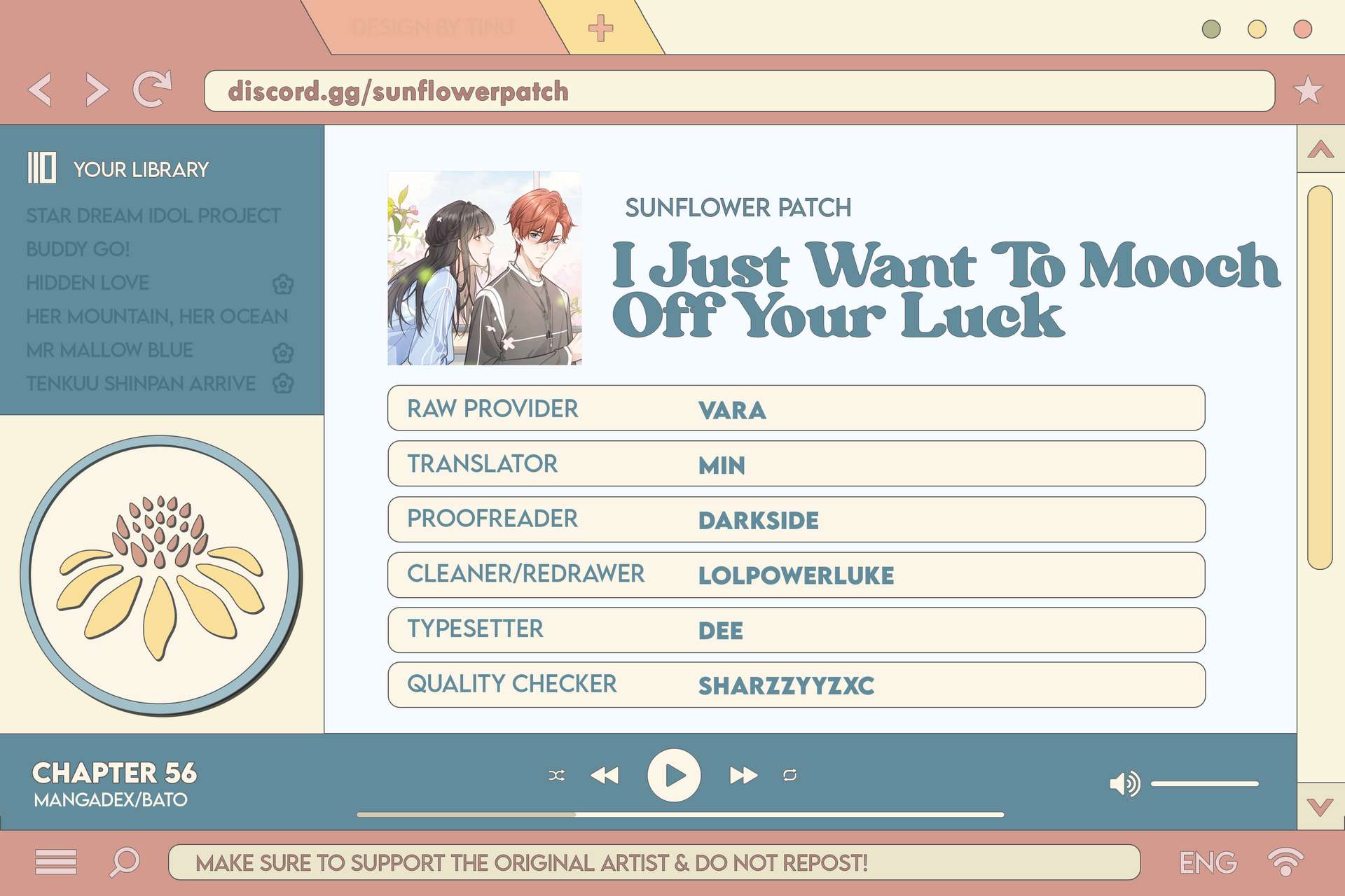 Read the latest manga I Just Want To Mooch Off Your Luck Chapter 57 at manganoads.com . Manga I Just Want To Mooch Off Your Luck is always updated at manganoads.com . Dont forget to read the other manga updates. A list of manga collections manganoads.com is in the Manga List menu.
