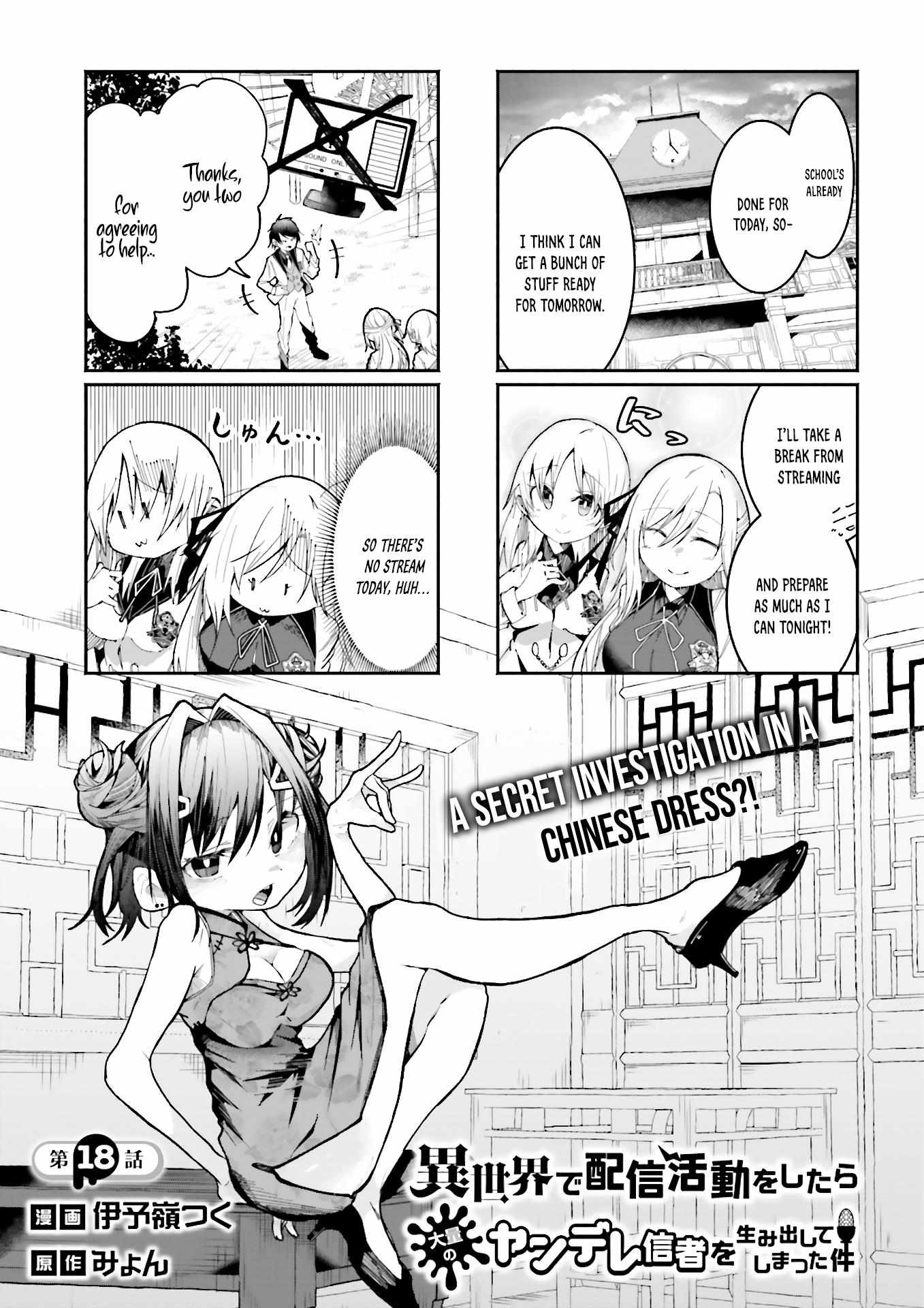 Read the latest manga Isekai de Haishin Katsudou wo Shitara Tairyou no Yandere Shinja wo Umidashite Shimatta Ken Chapter 18 at manganoads.com . Manga Isekai de Haishin Katsudou wo Shitara Tairyou no Yandere Shinja wo Umidashite Shimatta Ken is always updated at manganoads.com . Dont forget to read the other manga updates. A list of manga collections manganoads.com is in the Manga List menu.
