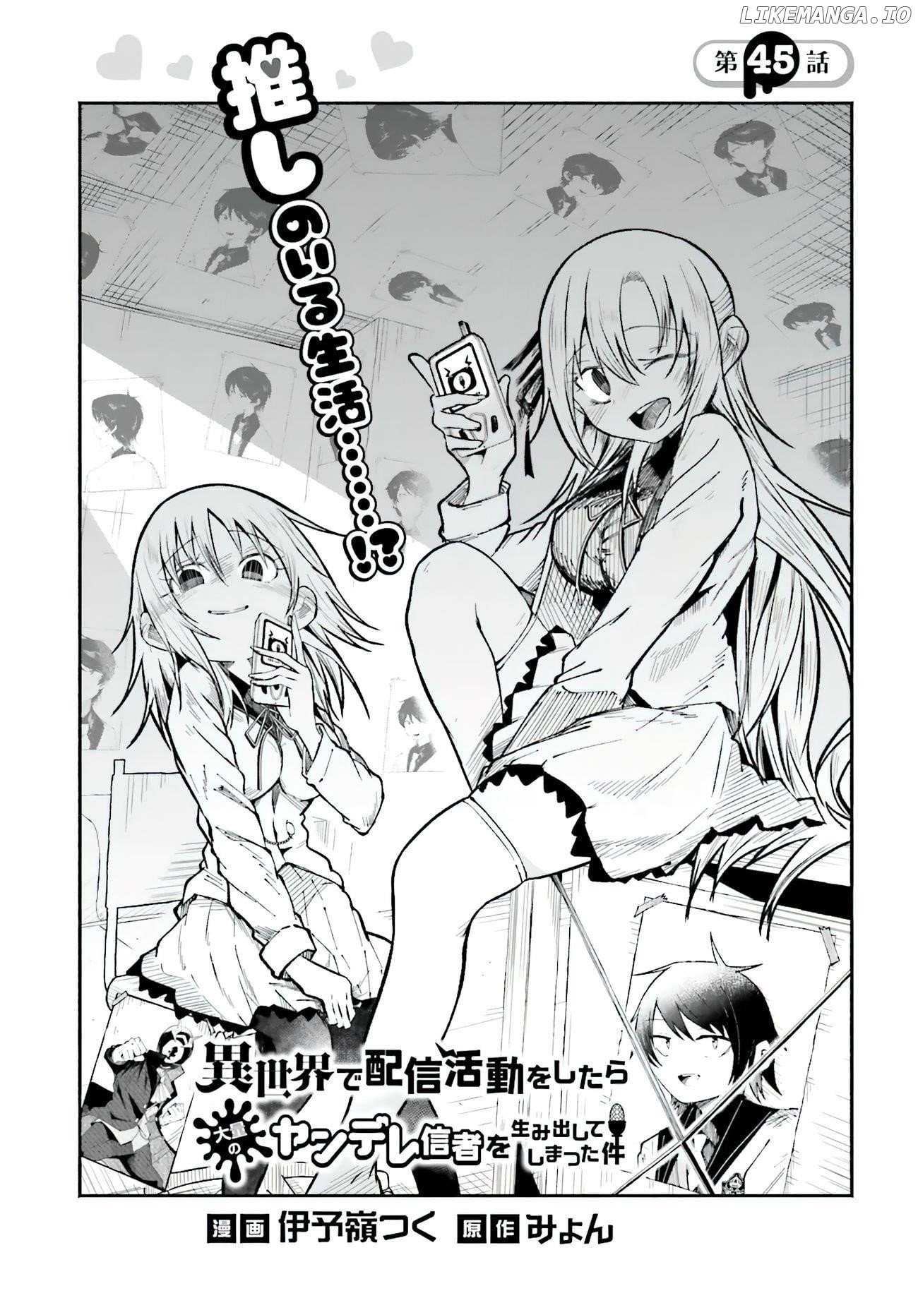 Read the latest manga Isekai de Haishin Katsudou wo Shitara Tairyou no Yandere Shinja wo Umidashite Shimatta Ken Chapter 45.1 at manganoads.com . Manga Isekai de Haishin Katsudou wo Shitara Tairyou no Yandere Shinja wo Umidashite Shimatta Ken is always updated at manganoads.com . Dont forget to read the other manga updates. A list of manga collections manganoads.com is in the Manga List menu.