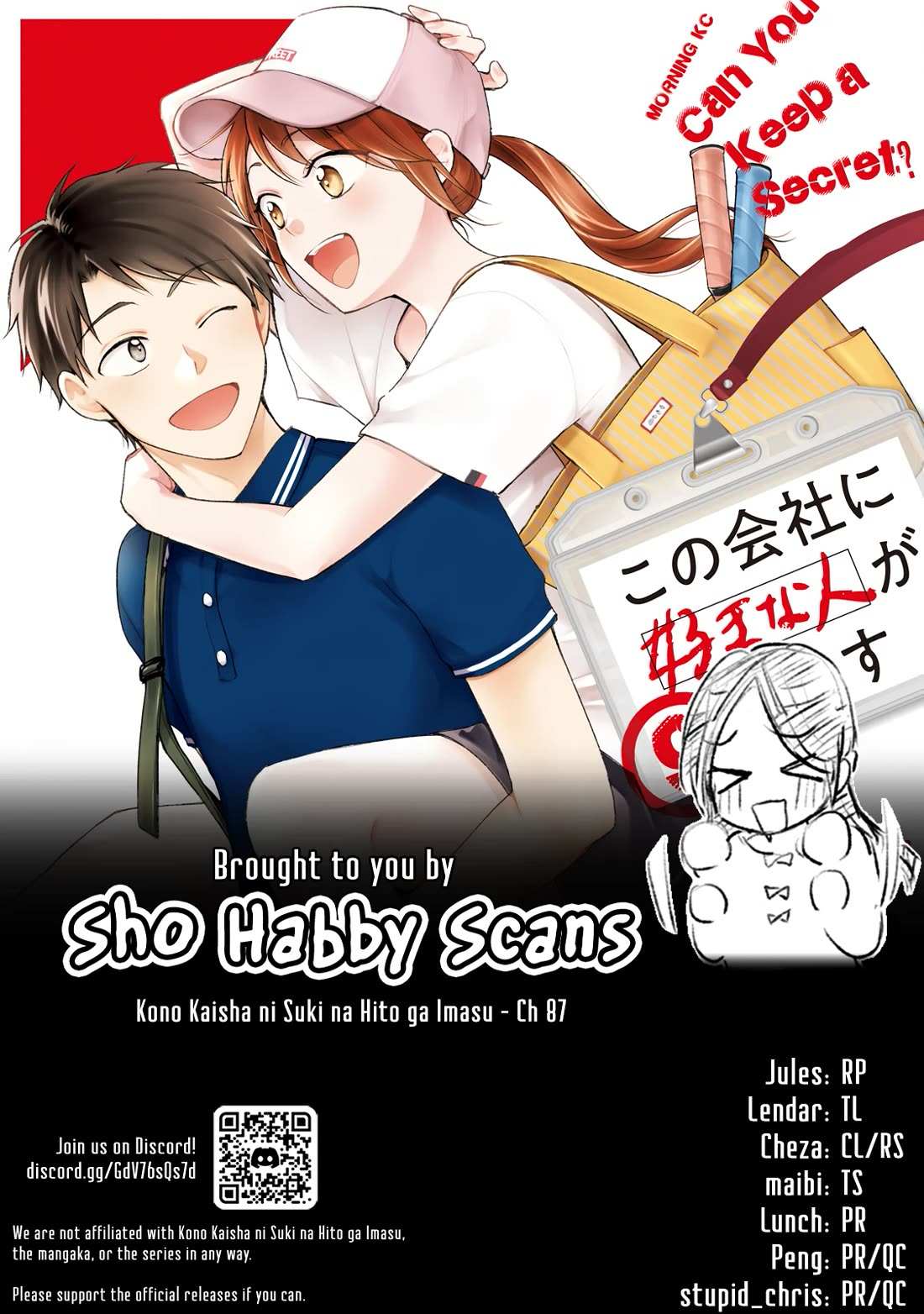 Read the latest manga Kono Kaisha ni Suki na Hito ga Imasu Chapter 87 at manganoads.com . Manga Kono Kaisha ni Suki na Hito ga Imasu is always updated at manganoads.com . Dont forget to read the other manga updates. A list of manga collections manganoads.com is in the Manga List menu.