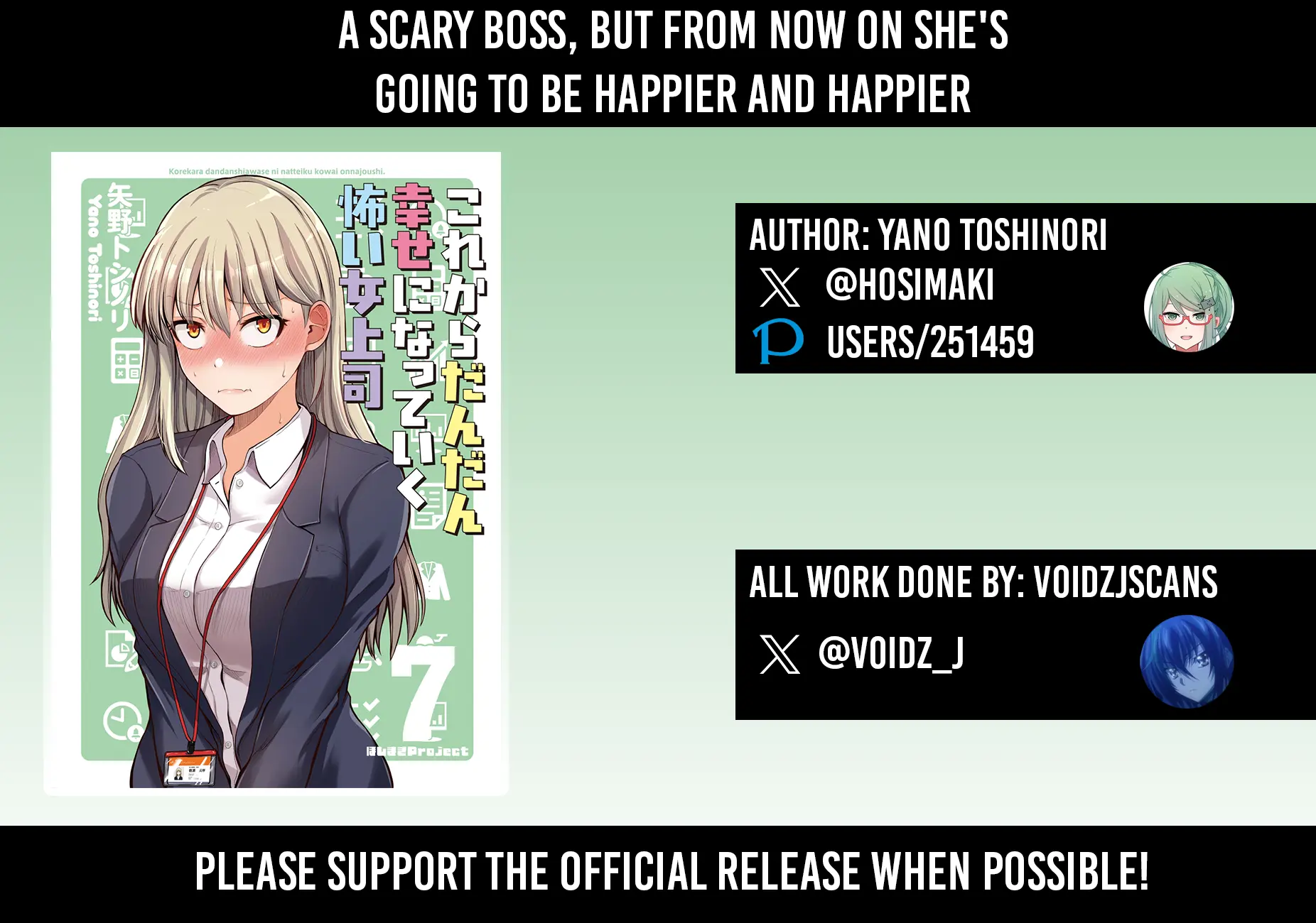 All chapters are in Kore kara Dandan Shiawase ni Natte Iku Kowai Onna Joushi