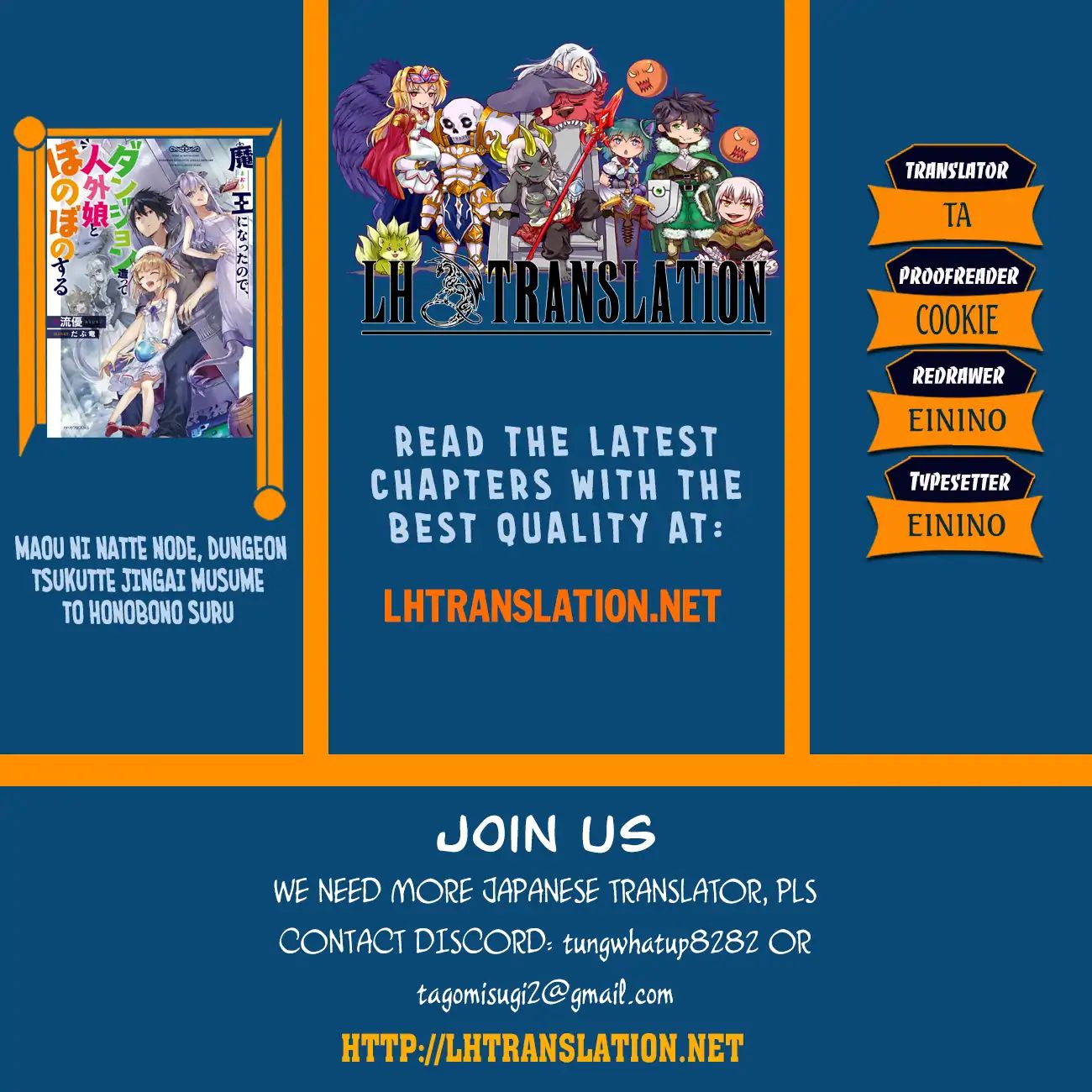 Read the latest manga Maou ni Natta node, Dungeon Tsukutte Jingai Musume to Honobono suru Chapter 12 at manganoads.com . Manga Maou ni Natta node, Dungeon Tsukutte Jingai Musume to Honobono suru is always updated at manganoads.com . Dont forget to read the other manga updates. A list of manga collections manganoads.com is in the Manga List menu.