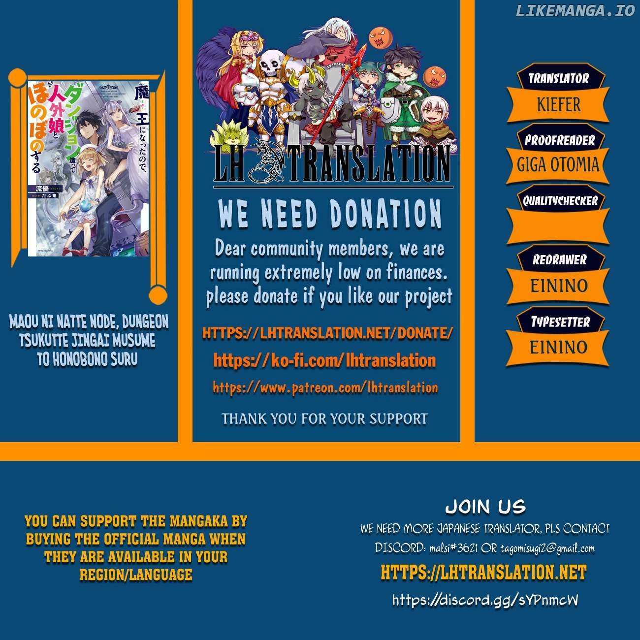 Read the latest manga Maou ni Natta node, Dungeon Tsukutte Jingai Musume to Honobono suru Chapter 82.1 at manganoads.com . Manga Maou ni Natta node, Dungeon Tsukutte Jingai Musume to Honobono suru is always updated at manganoads.com . Dont forget to read the other manga updates. A list of manga collections manganoads.com is in the Manga List menu.