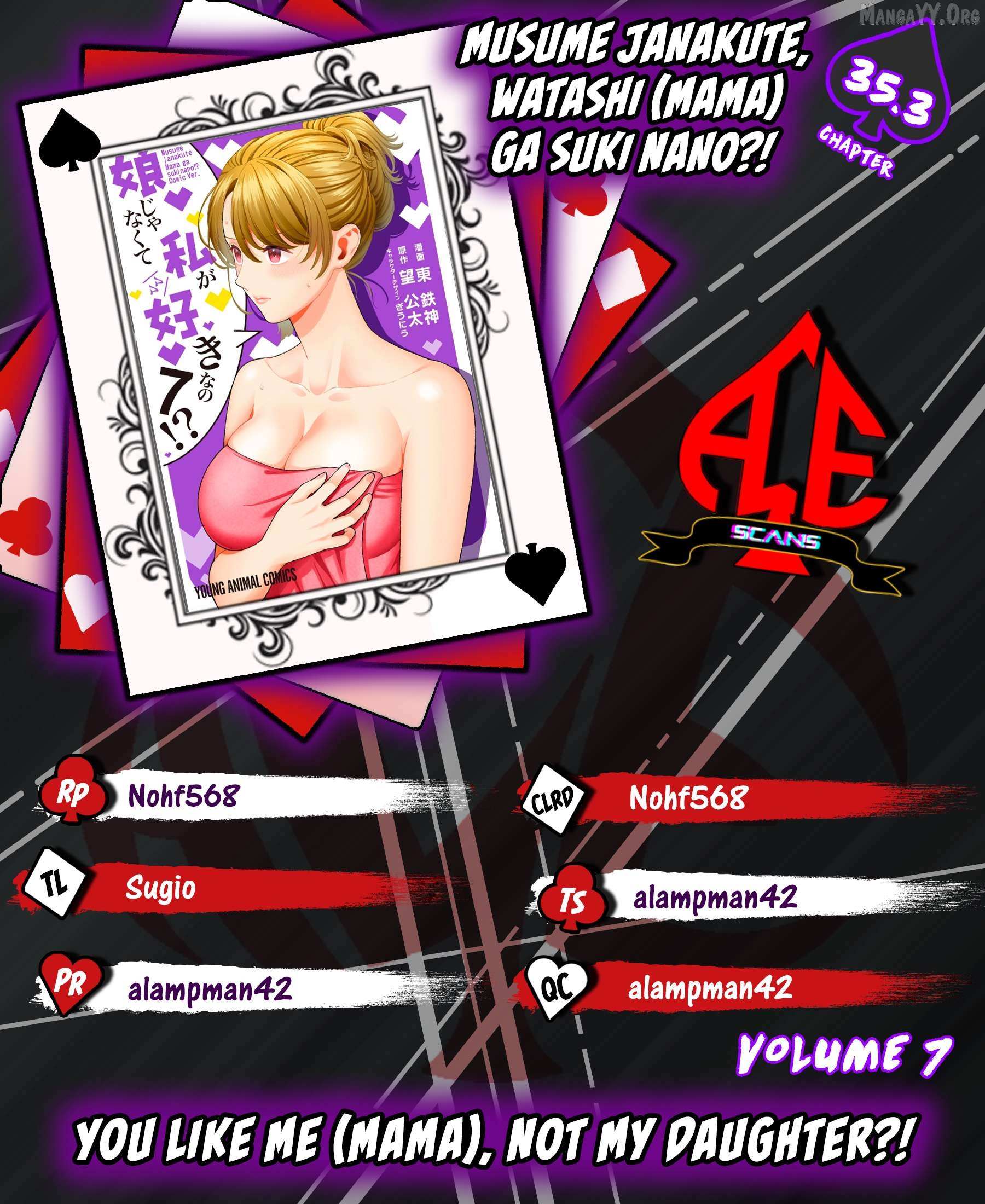 Read the latest manga Musume Janakute, Watashi (Mama) ga Suki Nano!? Chapter 35.3 at manganoads.com . Manga Musume Janakute, Watashi (Mama) ga Suki Nano!? is always updated at manganoads.com . Dont forget to read the other manga updates. A list of manga collections manganoads.com is in the Manga List menu.