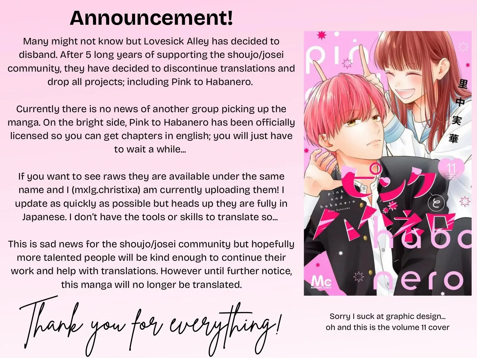 Read the latest manga Pink to Habanero Chapter 66.5 at manganoads.com . Manga Pink to Habanero is always updated at manganoads.com . Dont forget to read the other manga updates. A list of manga collections manganoads.com is in the Manga List menu.