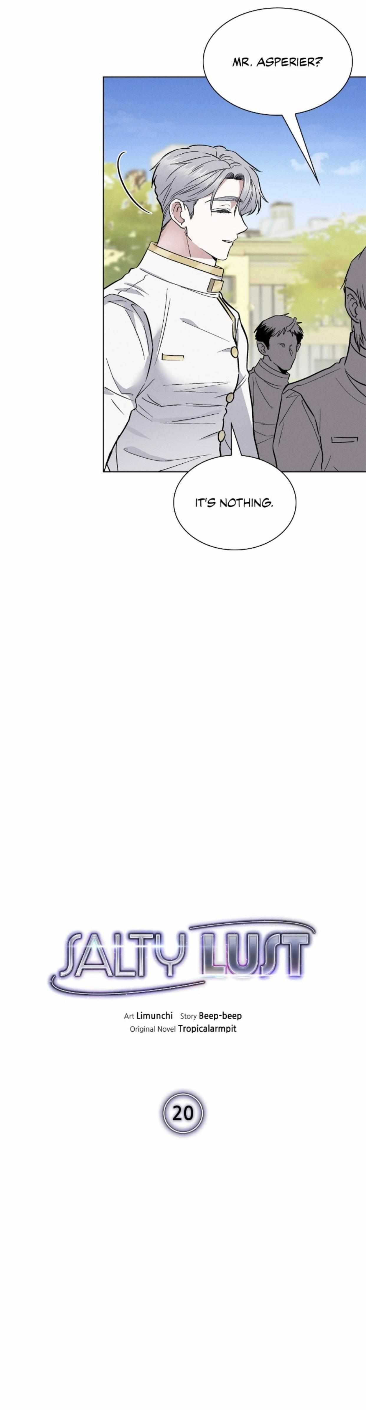 Read the latest manga Salty Lust Chapter 20 at manganoads.com . Manga Salty Lust is always updated at manganoads.com . Dont forget to read the other manga updates. A list of manga collections manganoads.com is in the Manga List menu.
