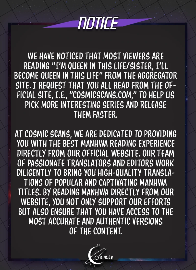 Read the latest manga Sister, I Am the Queen in This Life Chapter 50 at manganoads.com . Manga Sister, I Am the Queen in This Life is always updated at manganoads.com . Dont forget to read the other manga updates. A list of manga collections manganoads.com is in the Manga List menu.