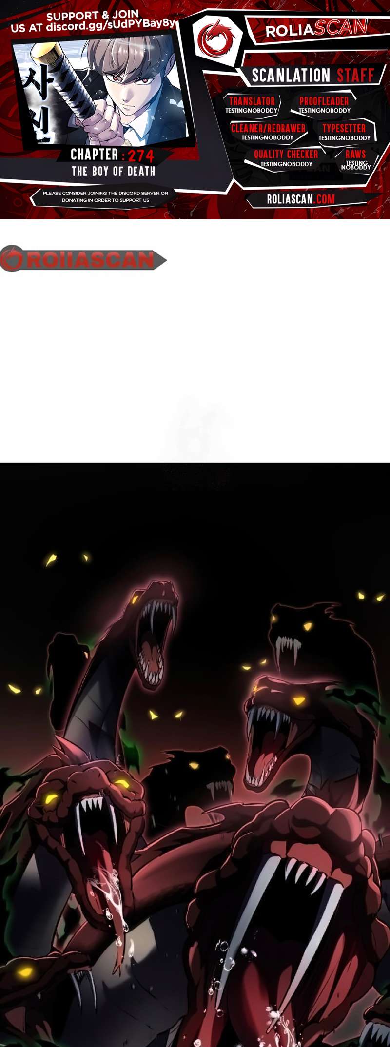 Read the latest manga The Boy of Death Chapter 274 at manganoads.com . Manga The Boy of Death is always updated at manganoads.com . Dont forget to read the other manga updates. A list of manga collections manganoads.com is in the Manga List menu.