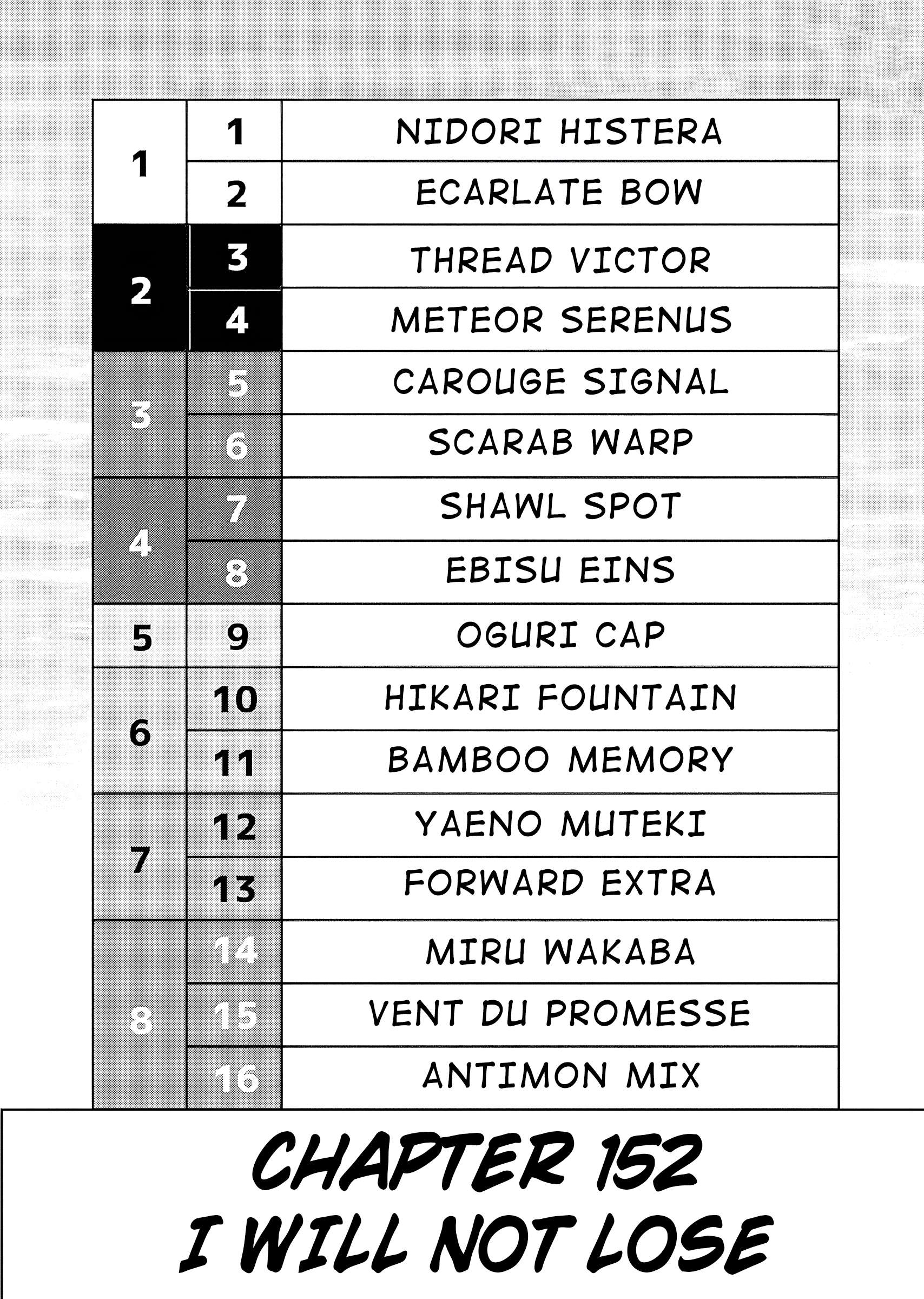 Read the latest manga Uma Musume: Cinderella Gray Chapter 152 at manganoads.com . Manga Uma Musume: Cinderella Gray is always updated at manganoads.com . Dont forget to read the other manga updates. A list of manga collections manganoads.com is in the Manga List menu.