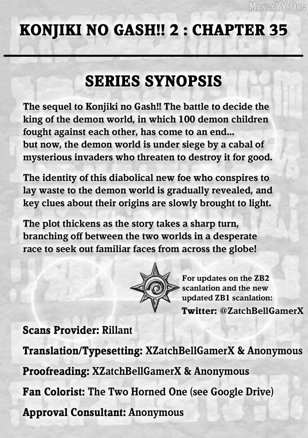 Read the latest manga Zatch Bell!! 2 Chapter 35 at manganoads.com . Manga Zatch Bell!! 2 is always updated at manganoads.com . Dont forget to read the other manga updates. A list of manga collections manganoads.com is in the Manga List menu.